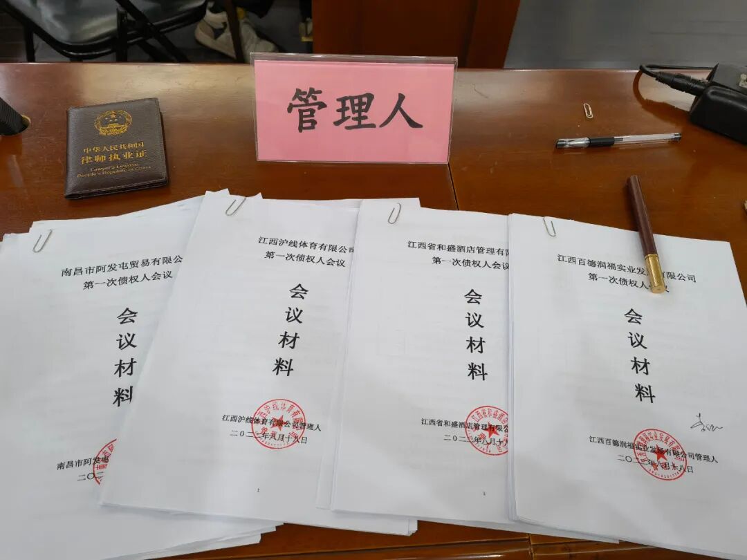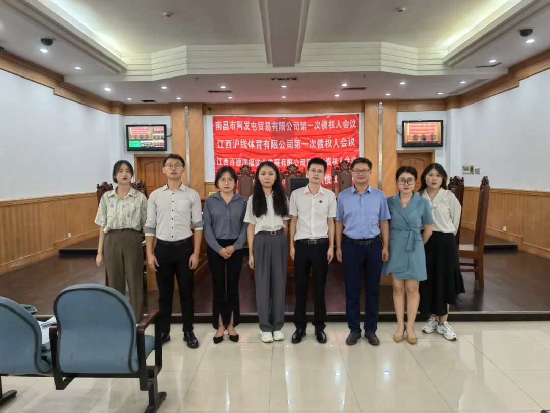 会议最后,审判长提醒债务人及债务人法定代表人应积极配合管理人进行破产清算,并告知债权人与管理人积极联系,进一步加强沟通,审判长还针对每一个破产案件的情况进行详尽工作指导。最后,审判长宣布南昌市阿发屯贸易有限公司、江西沪线体育有限公司、江西省和盛酒店管理有限公司、江西百德润福实业发展有限公司破产案第一次债权人会议结束。