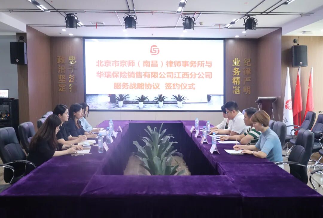2022年9月30日下午,京师南昌所与华瑞保险销售有限公司江西分公司沟通交流会暨战略合作协议签订仪式圆满举行。华瑞江西公司总经理刘家俊,副总经理宋启涛,团队长陶姝萍及潘南希一行人员出席本次战略合作签订仪式。