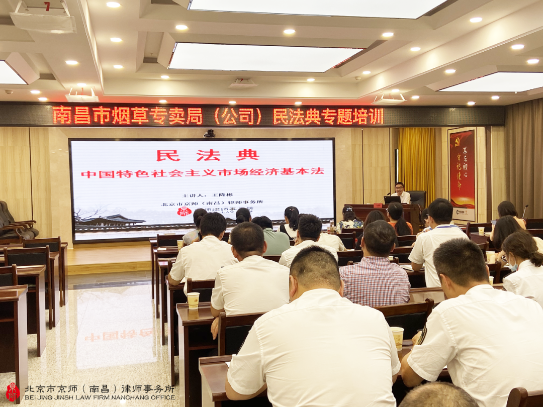 为贯彻落实习近平总书记重要指示精神,抓好《民法典》的学习和实施,推进法治建设。8月17日,南昌市烟草专卖局(公司)组织了民法典专题培训,我所主任律师王隆彬受邀为其授课。王隆彬律师用其深厚的法学理论和丰富的实务经验着重对《民法典》中关于中国特色社会主义市场经济基本法的有关规定进行了系统讲解。 王隆彬律师首先为大家介绍了《民法典》的基本构成,民法典一共有七编,分别是总则编、物权编、合同编、人格权编、婚姻家庭编、继承编和侵权责任编,并对民法典各编中的“亮点”进行了深入浅出的解读。 而后,王隆彬律师开始正式解读《民法典》中关于中国特色社会主义市场经济基本法的有关规定。首先王隆彬律师指出《民法典》规定了市场经济的三大制度和三大规则;其次,介绍了《民法典》不仅规定了市场主体享有物权、债权、知识产权等民事权益,还规定了市场主体行使权利的基本规则,包括自由依法行使民事权利、权利义务一致、不得滥用民事权利。同时,王隆彬律师分别介绍了《民法典》所规定的民事法律行为有效的情形、无效的情形以及可撤销民事法律行为的情形。随后,王隆彬律师为大家详细介绍了《民法典》中有关物权主体及内容的规定,认为民法典进一步完善了担保物权制度促进物更大发挥融资功能。接着,王隆彬律师介绍了《民法典》规定的市场交易的七大基础规则,并且认为民法典规定的19类典型合同为交易提供了行为指南。最后,王隆彬律师为大家介绍了诉讼时效制度,认为诉讼时效、除斥期间制度有利于维护交易的稳定。在讲座末尾,王隆彬律师用三句话对本次讲座进行了总结,认为民法典体现了市场经济发展的权益与自由,维护了市场经济发展的安全与稳定,提升了市场经济发展的效率与潜力。 图:讲座现场 参与本次讲座的工作人员也纷纷表示能够充分认识颁布实施民法典的重大意义,京师律师也将继续开展民法典宣传系列讲座,切实为推进民法典的施行,奉献出自己的一份力量。