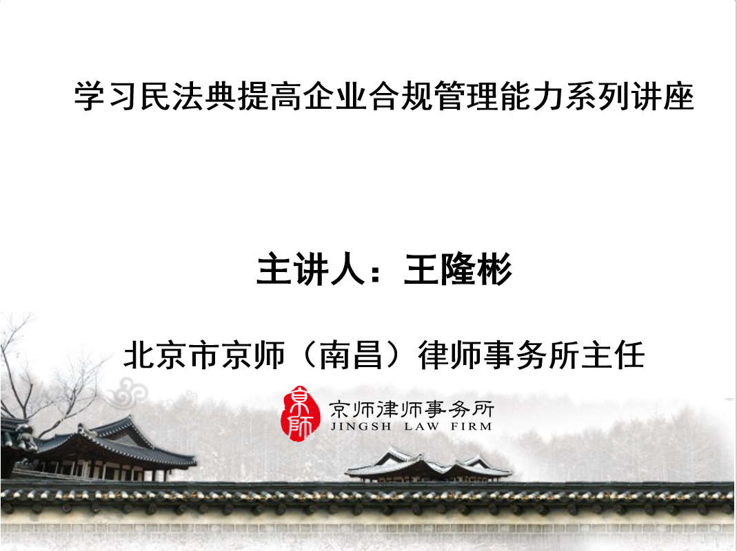 为坚决落实习近平总书记关于民法典的重要论述,将学习贯彻实施民法典纳入国企工作全局,着力形成尊法、学法、守法、用法的良好氛围,2020年10月21日,江西洪都航空工业集团有限责任公司特邀我所主任王隆彬律师,为公司开展《学习民法典-提高企业合规管理能力》专题培训。 图:讲座现场 此次培训王隆彬律师通过合同效力、预约合同、格式条款、债权债务形式、债务清偿、担保责任认定,抵销权行使,撤销权的行使等多维度对《民法典》合同编进行了重点解读。同时在本次培训中,王隆彬律师还专门就公司日常工作中遇到的法律问题现场与大家进行互动交流,答疑解惑,为公司合规经营等提供了专业性建议。 图:讲座现场 此次民法典专题培训,参会人员深刻认识到了《民法典》对国有企业管理提出的新要求,设置的新边界,同时对企业加强和规范合同管理,正确履行好合同主体责任,促进企业依法合规经营具有重要积极意义。