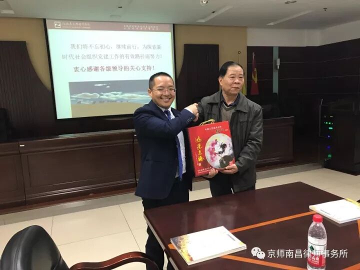 为更好地学习贯彻十九大精神,推进以党建带所建,学习党建先进律师事务所的先进理念,加快我所党支部建设,2017年12月1日,在京师南昌所陈曦、王隆彬主任的大力支持下,在南昌市司法局律师党委专职副书记肖颂的带队领导下,我所主任律师、党支部书记郭舒萍携我所全体党员,前往江西南芳律师事务所(简称“南芳所”)进行为期2天的党建工作学习交流,南芳所党委委员、业委会主任谢智勇,主任律师、行财委主任陈宝发,党委办公室主任郭连生等接待了我所一行,并详细介绍了南芳所基层党组织建设和以党建促所建的发展情况。