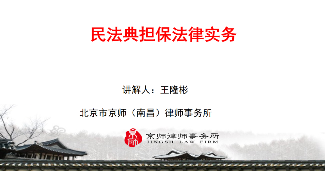 为进一步夯实集团法治国企建设工作,做好2020年度法务工作总结和2021年度法务工作安排。2020年12月23日至12月25日,江投集团公司在九仙君澜温泉度假酒店成功举办了“江西省投资集团有限公司2020年法务工作暨业务培训会”。 主讲人:知识管理委员会主任王隆彬律师   王隆彬律师作为江投集团常年法律顾问,受邀在培训班讲授“民法典担保法律实务”。江投集团公司及所属各企业法务、风控人员及领导学员共100余人参加了此次培训。王隆彬律师结合公司实际,通过理论教学、案例研讨、互动座谈相结合的方式,对《民法典》中确立的担保物权,保证部分的重点法律条款进行详细解读,囊括了担保分类、担保方式、担保效力、流质和流押的效力、对抗规则、优先权、登记导向、权利顺位、让与担保、抵押物转让、追偿权、保证期间与诉讼时效在内的与实务联系密切的担保规则。 图:讲座现场 授课过程中,王隆彬律师注重与参会学员们的互动,对学员提出的热点难点问题,运用法律专业知识详尽进行解答。本次培训得到了江投集团参会学员的广泛好评,认为本次培训课程内容针对性强,对处理公司日常法务工作具有极大的指导意义,为今后更好的服务和保障江投安全健康发展奠定了坚实基础。