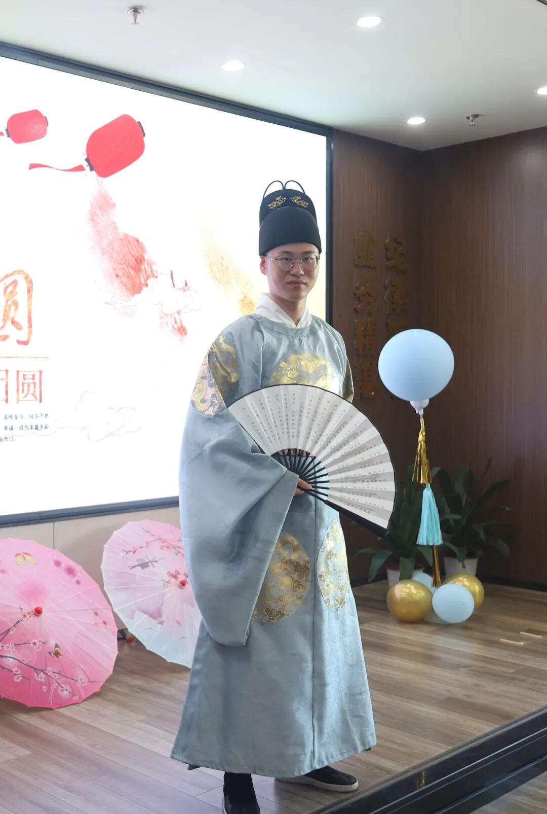 丹桂香郁是千里,明月寄情是惬意。9月17日,正逢中秋佳节来临之际,北京市京师(南昌)律师事务所举办了“锦绣应识,共赏霓裳”中秋活动暨第三季度生日会。此次活动别出心裁,为律师家人们准备了各式各样的汉服服饰,让家人们来一次古风穿越体验。手工柚子灯、抢答小游戏、砸金蛋等多个精彩环节也让现场的每位律师家人们开怀大笑,感受着来自京师大家庭的温暖。 活动伊始,律所主任律师彭云舟身着一身明制常服翩翩出场主持活动,为我们讲解有关汉服的传统文化知识。现场的家人们也有穿着各式各样不同风格的汉服服饰,给我们带来一场古风视觉盛宴。