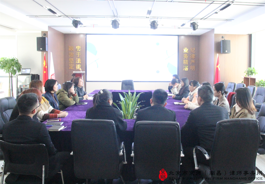 会议由行政委员会主任陈海燕主持,她代表京师南昌所欢迎10名新进律师加入“京师大家庭”。接着,介绍了律所及行政服务团队工作,并表示欢迎大家对行政服务团队的工作进行监督指正。