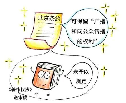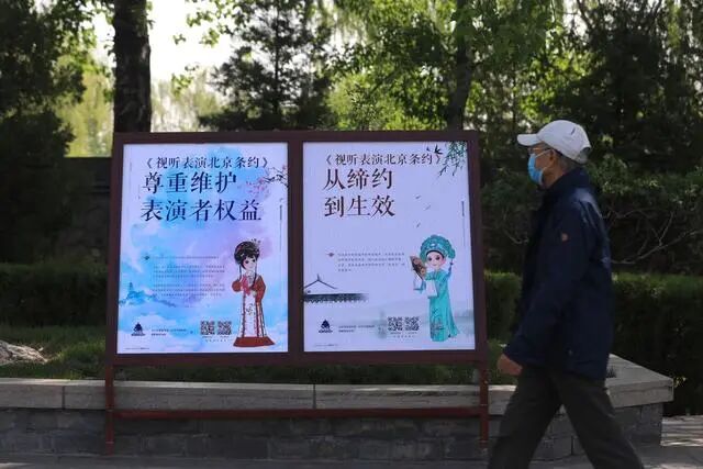 2014年4月24日,十二届全国人大常委会第八次会议表决通过并批准了《北京条约》,2014年7月10日,中国政府代表向世界知识产权组织,递交了批准书,使得我国成为《北京条约》第五个缔约方。《北京条约》是新中国成立以来,第一个在中国缔结并以中国城市命名的国际知识产权条约。中国,为推动《北京条约》的缔结和生效,开展了大量富有成效的工作,并成为率先签署的国家之一。《北京条约》是中国版权事业的里程碑,是惠及全球表演者的新起点。《北京条约》共30条,规定了表演者的精神权利和经济权利。保护期自表演之年起至少50年。该条约弥补了以往国际条约中无法全面保护表演者权利的不足。《北京条约》的诞生,标志着表演者权利保护从传统走向现代,从制度创建走向制度完善。